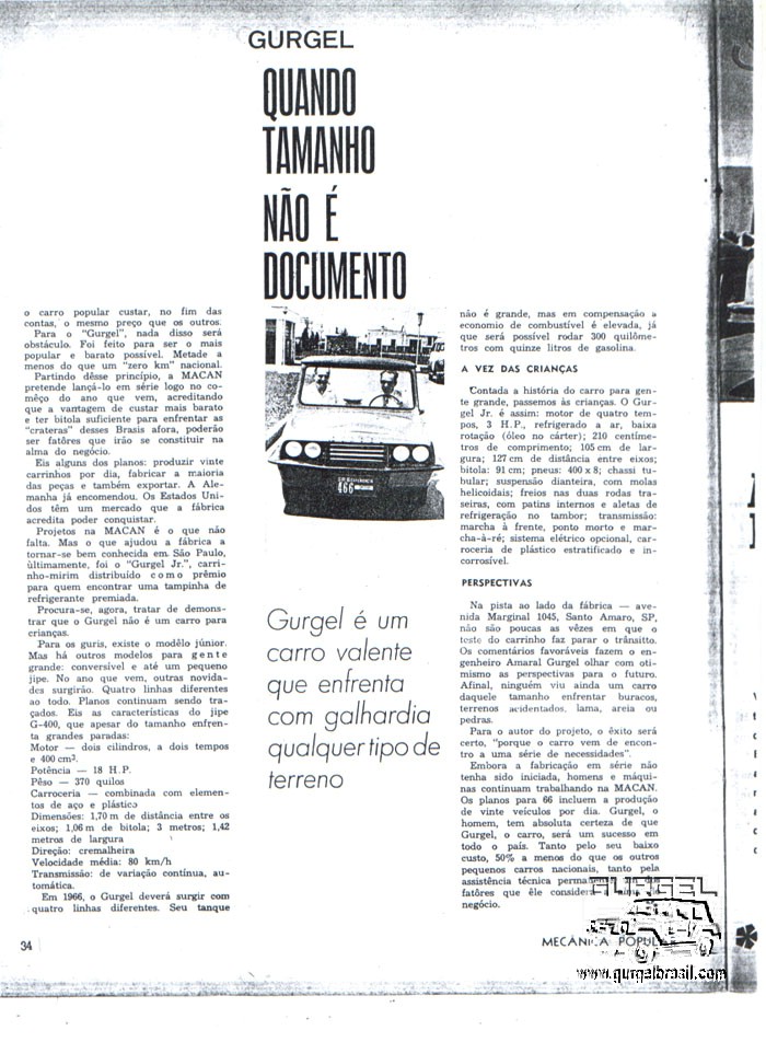 -Reportagem: GURGEL - QUANDO TAMANHO NÃOO É DOCUMENTO- Pag 3 (Mecânica Popular-JAN1966-Pag. 34)