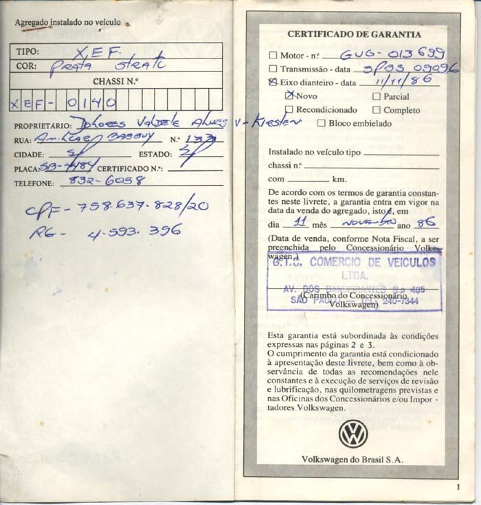 apresenta: Manual do Proprietário XEF -1986 "Livrete de Serviços