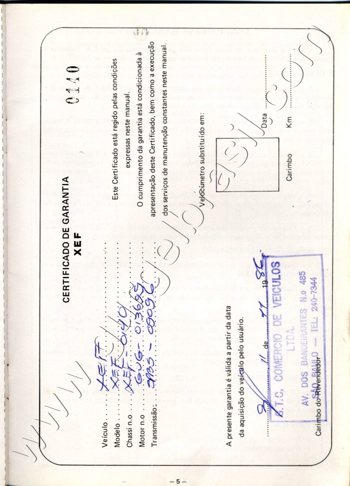 apresenta: -Manual do Proprietário XEF -1986 Página 05