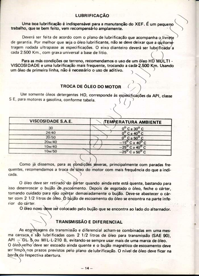 apresenta: -Manual do Proprietário XEF -1986 Página 14