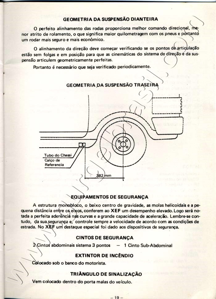 apresenta: -Manual do Proprietário XEF -1986 Página 19