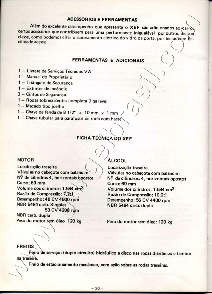 apresenta: -Manual do Proprietário XEF -1986 Página 20